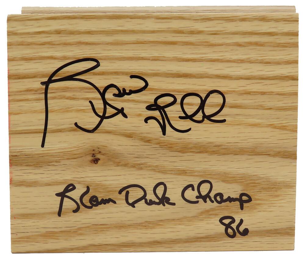 Floor piece measures 5" x 6" in size and has been hand-signed and inscribed by Spud Webb (Atlanta Hawks).