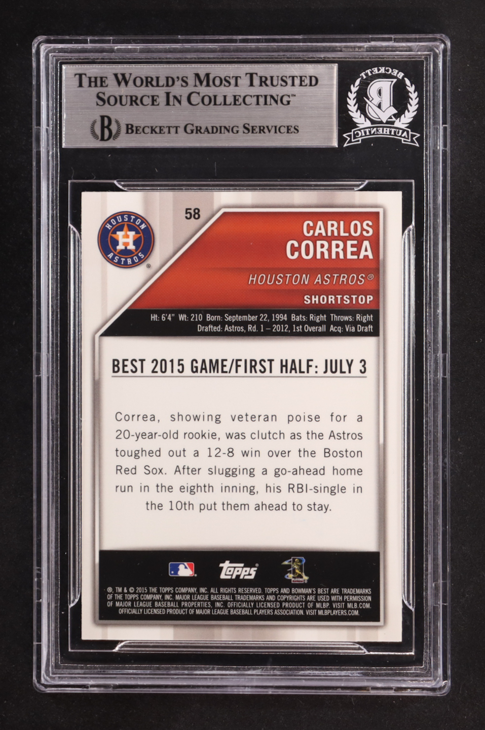 Carlos Correa 2015 Bowman's Best #58 RC (BGS Encapsulated)