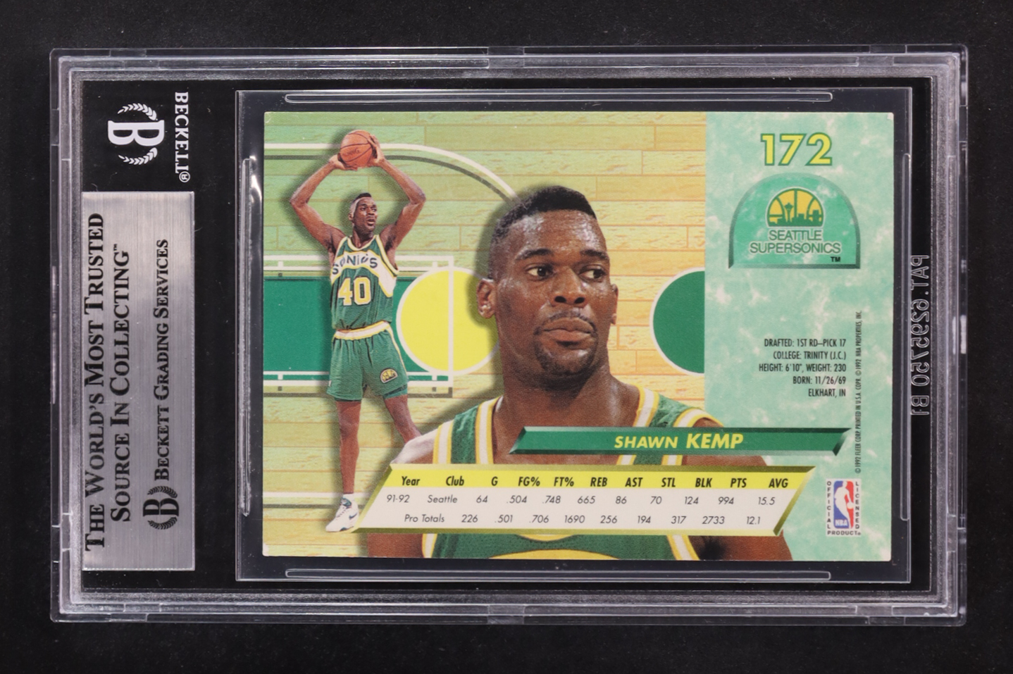 Shawn Kemp Signed 1992-93 Ultra #172 (BGS Encapsulated)
