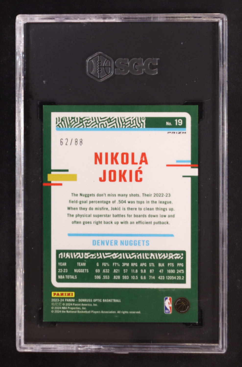 Nikola Jokic 2023-24 Donruss Optic Choice Red #19 #62/88 (SGC 9.5)