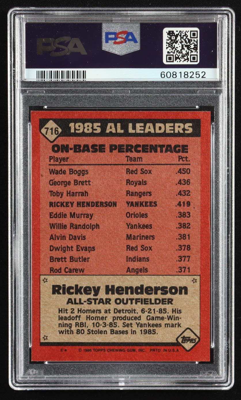 Rickey Henderson 1986 Topps #716 AS (PSA 8)