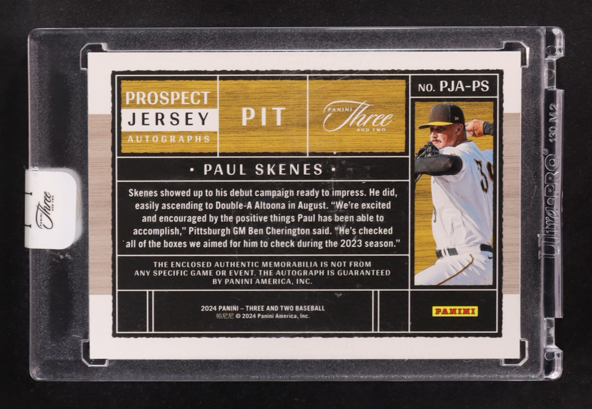 Paul Skenes 2024 Panini Three and Two Prospect Jersey Autographs Holo Silver #29 #10/49 RC
