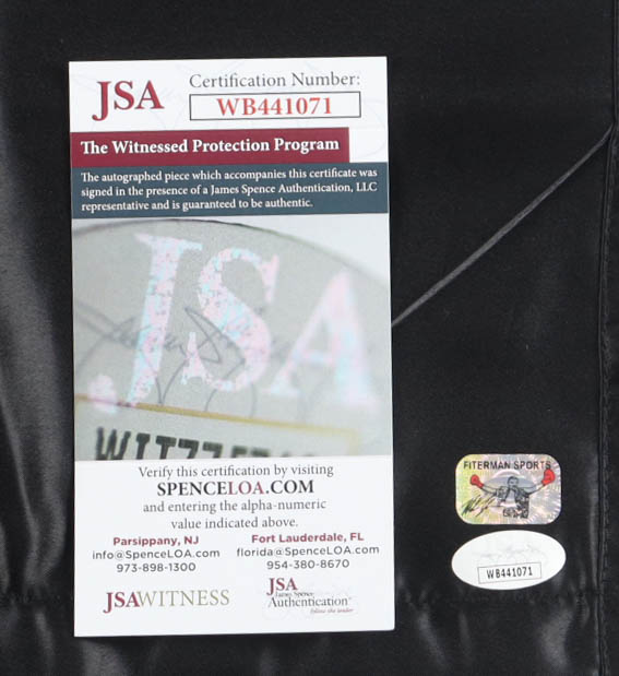 The autograph(s) includes an official James Spence Authentication (JSA) hologram and matching COA as well as an official Mike Tyson hologram from Fiterman Sports Group for authenticity purposes. The signing of this item was witnessed by JSA.