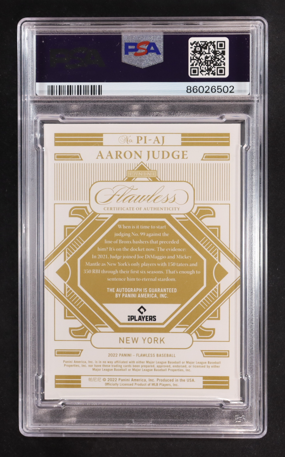 Aaron Judge 2022 Panini Flawless Premium Ink #9 #13/25 (PSA 9)