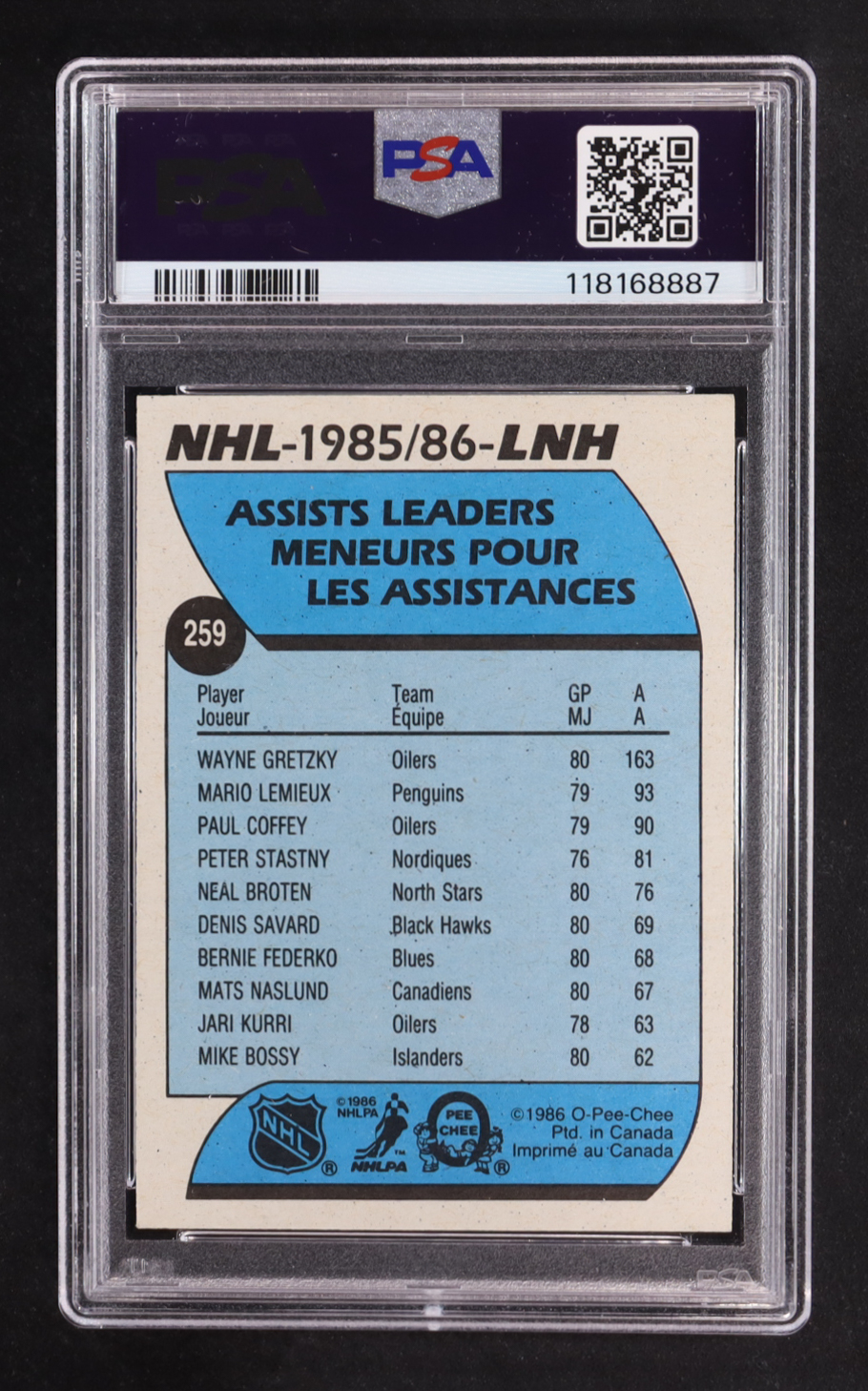 Wayne Gretzky Signed 1986-87 O-Pee-Chee #259 LL (PSA 8 | Auto 10)