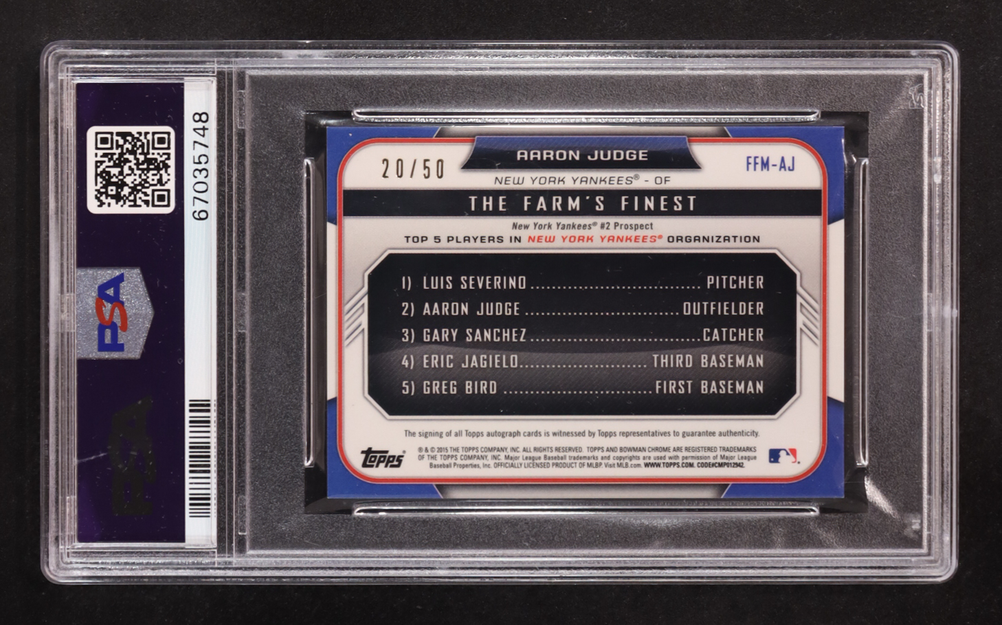 Aaron Judge 2015 Bowman Chrome Farm's Finest Minis Autographs Gold Shimmer Refractors #FFMAJ #20/50 RC (PSA 9)
