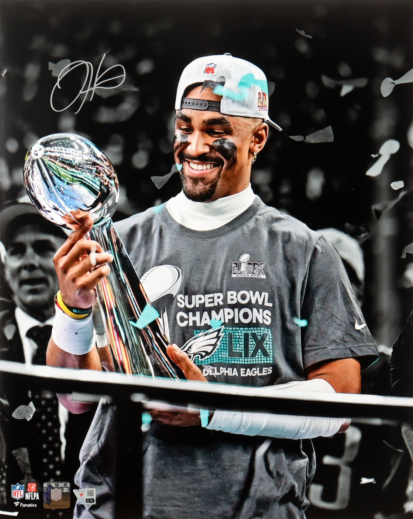 Photo measures 16" x 20" in size and has been hand-signed by Jalen Hurts (Philadelphia Eagles).