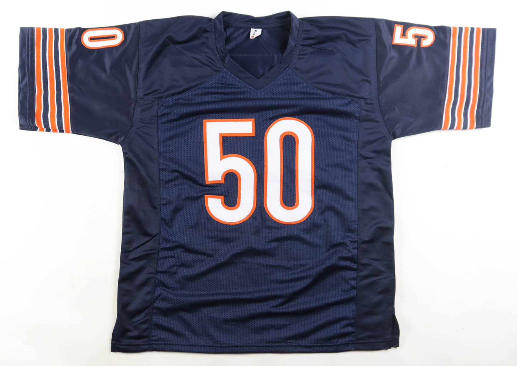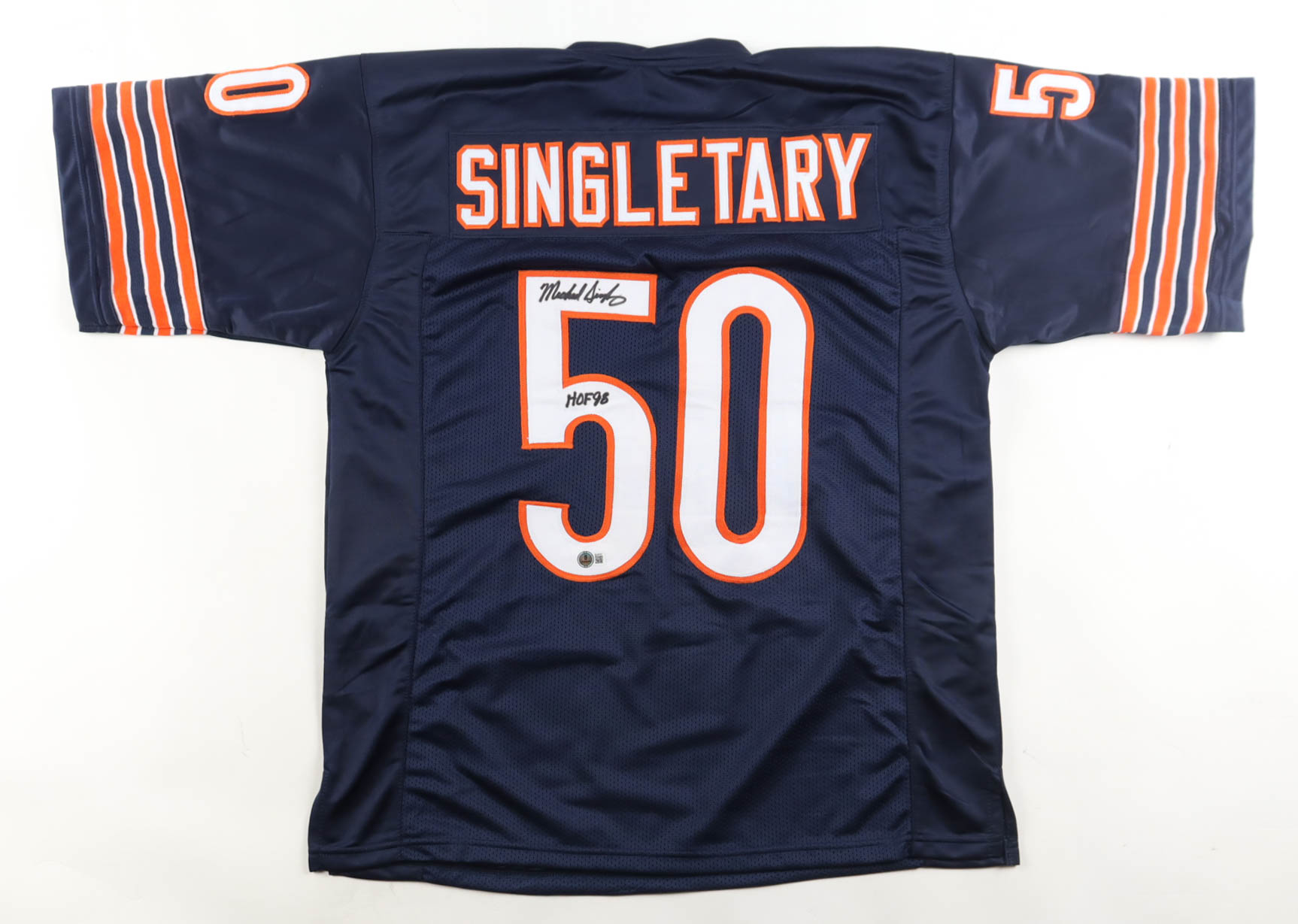 Custom jersey with everything sewn on, size XL. Hand-signed and inscribed by Mike Singletary (Chicago Bears, HOF).