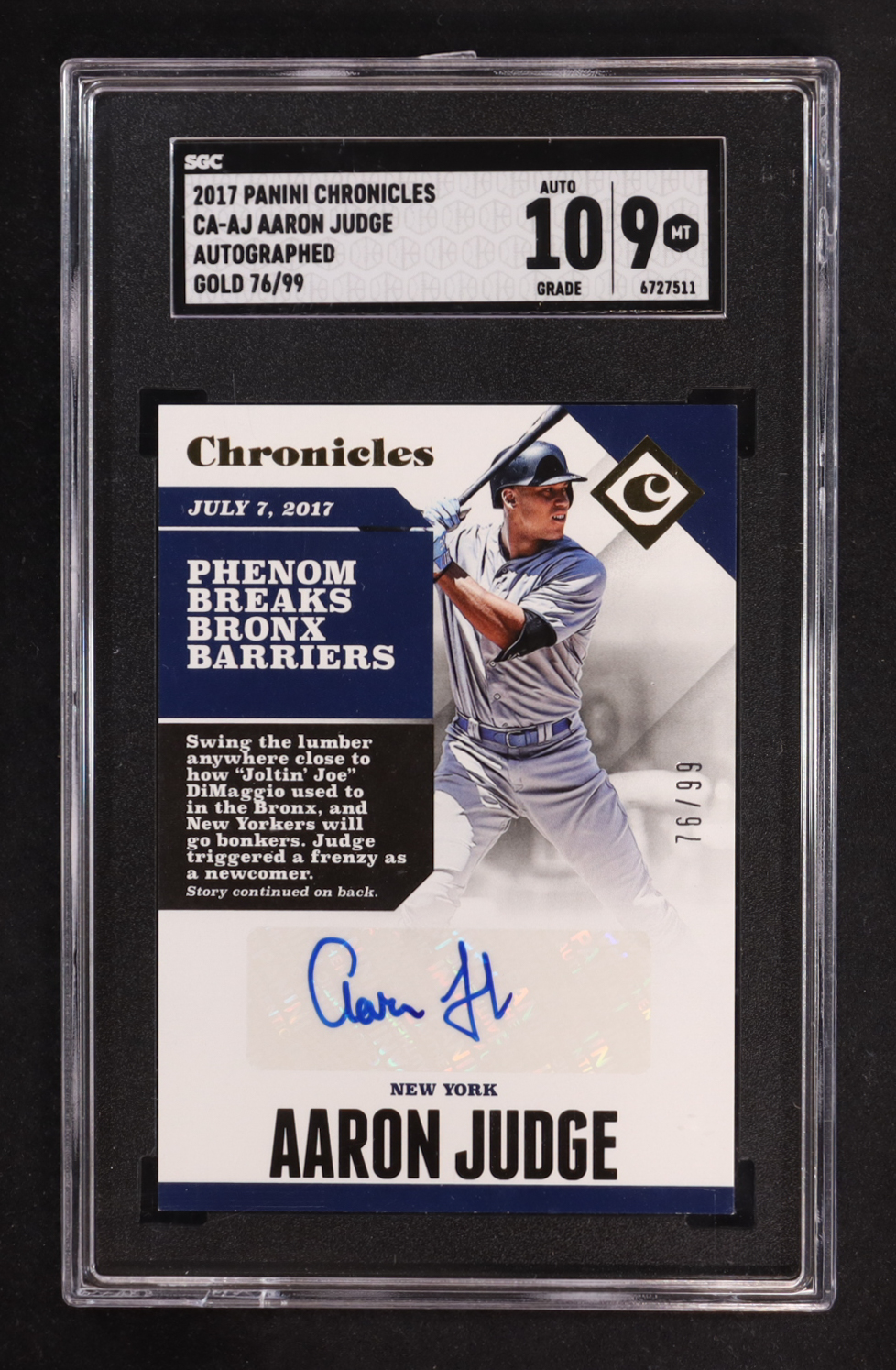 Aaron Judge 2017 Panini Chronicles Autographs Gold #1 #76/99 RC (SGC 9 | Auto 10)