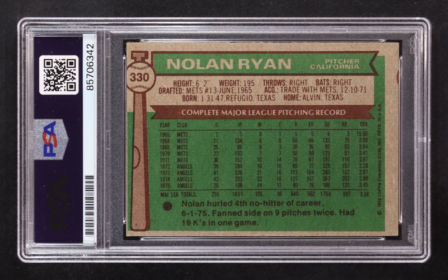 Nolan Ryan Signed 1976 Topps Inscribed "HOF '99" #5 (PSA | Autograph Graded PSA 10)