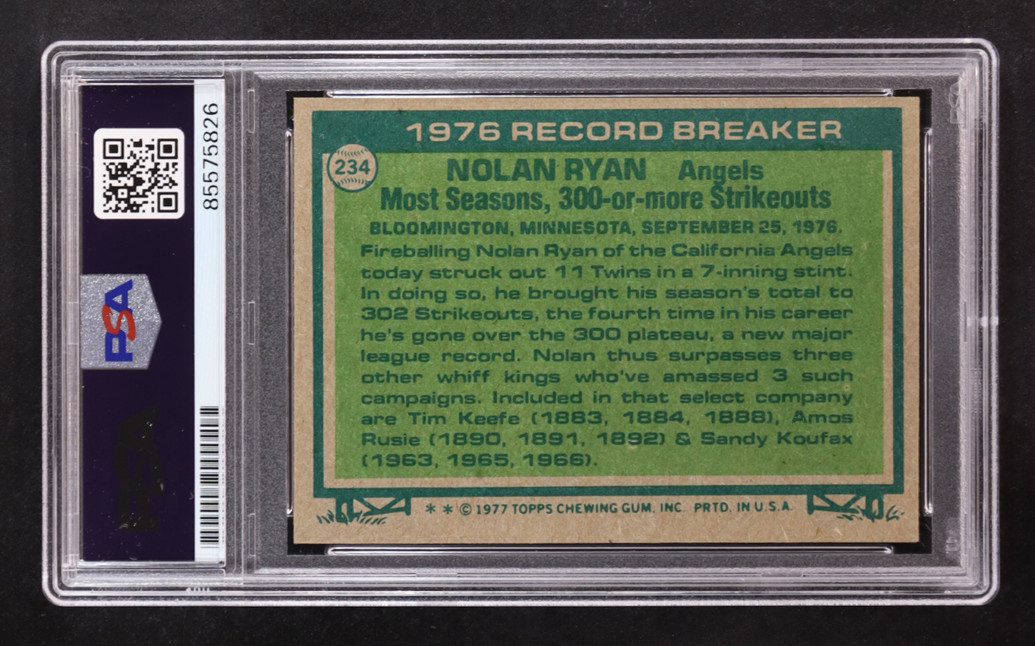 Nolan Ryan Signed 1977 Topps Record Breaker #234 (PSA | Autograph Graded PSA 10)