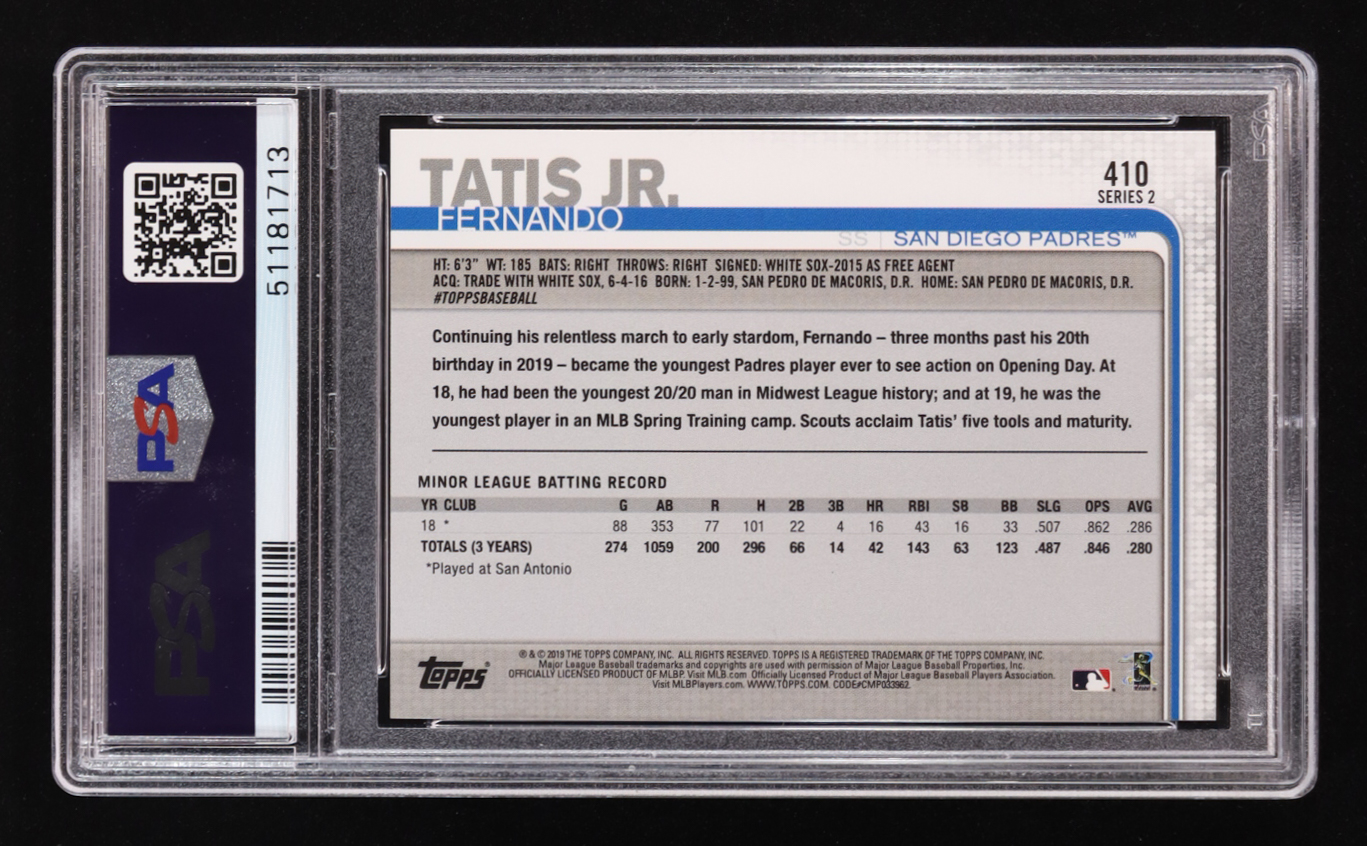 Fernando Tatis Jr. 2019 Topps #410 RC (PSA 10)