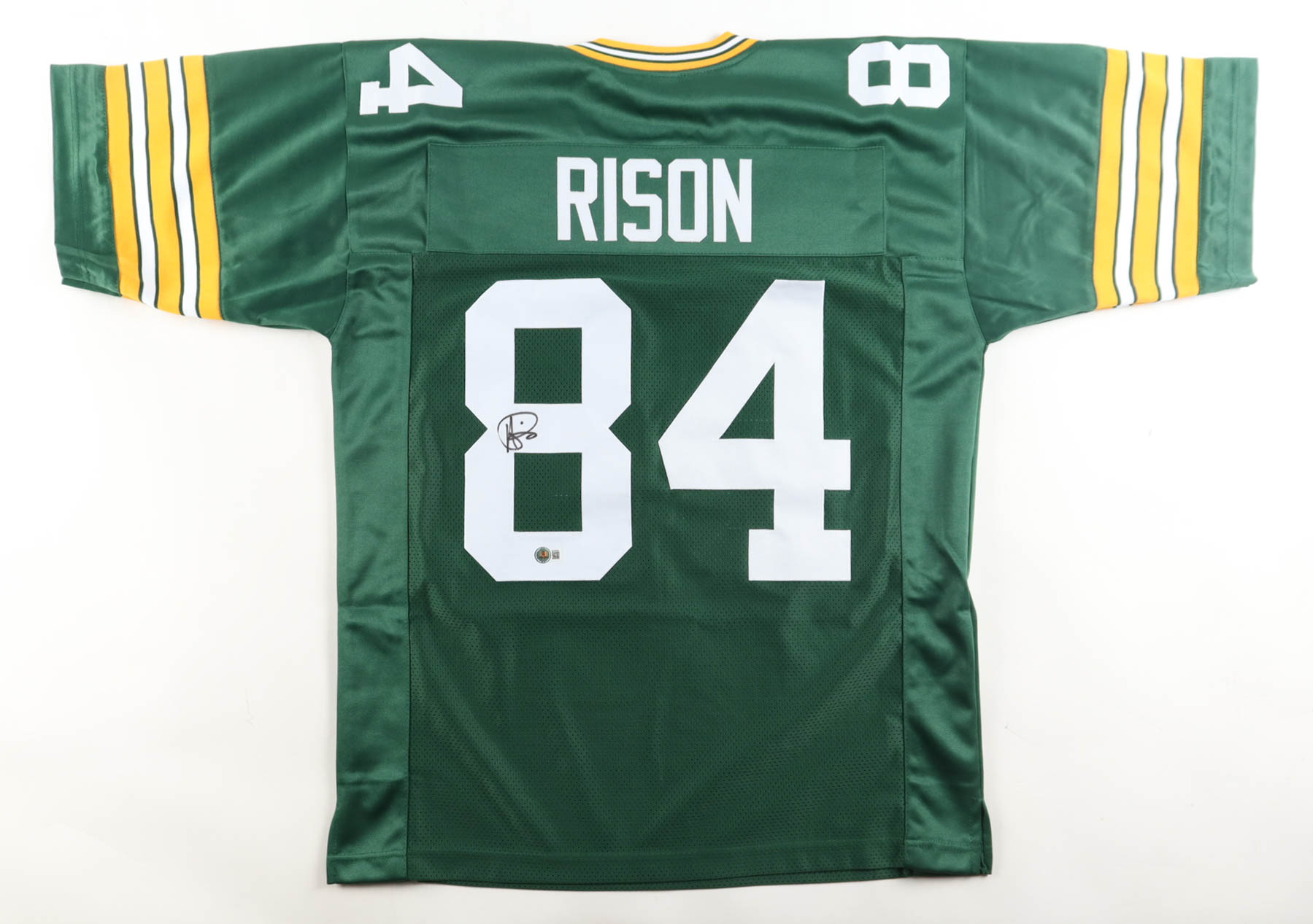 Custom jersey with everything sewn on, size XL. Hand-signed by Andre Rison.