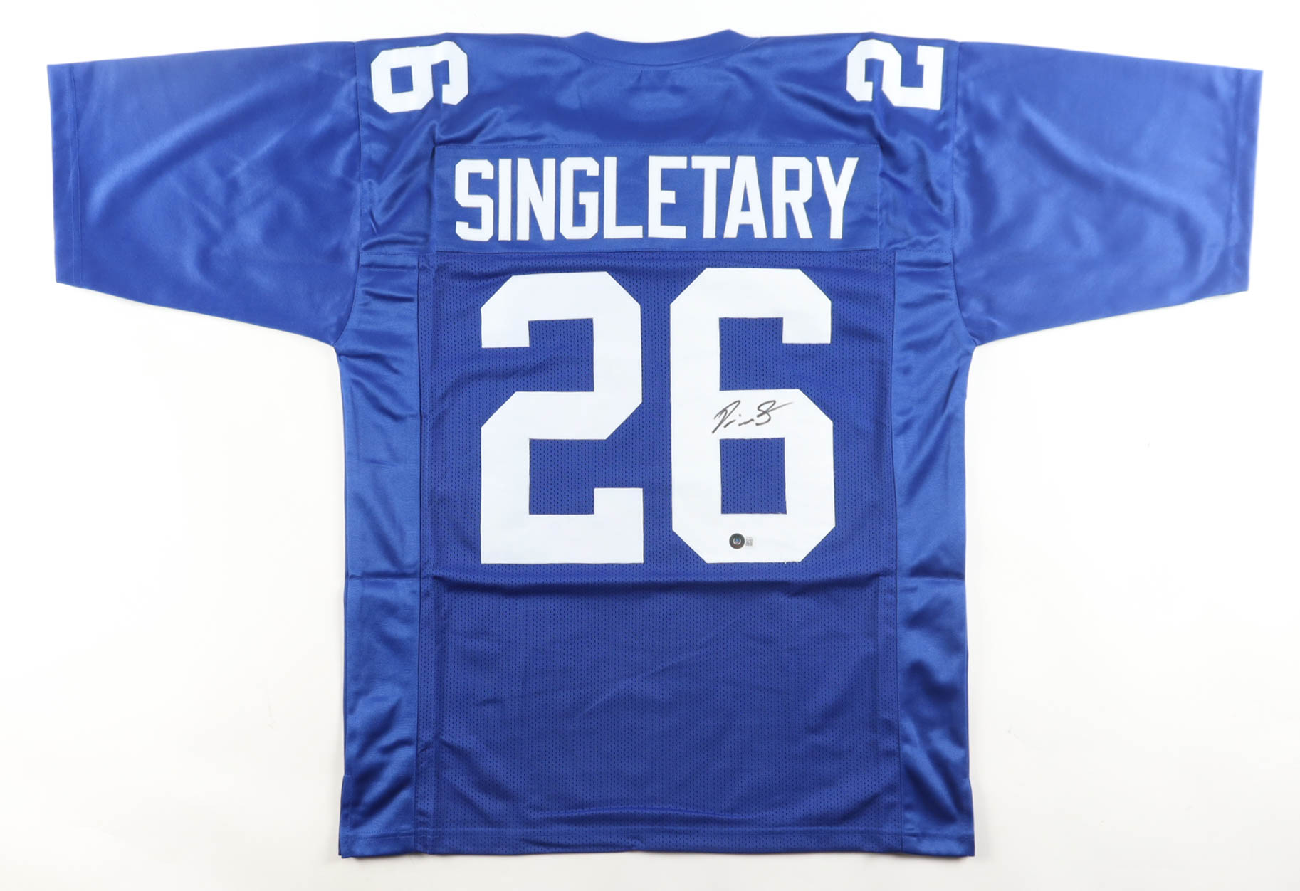 Custom jersey with everything sewn on, size XL. Hand-signed by Devin Singletary.