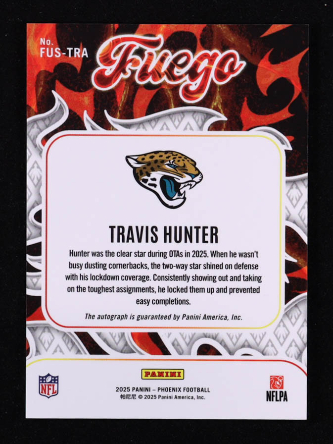 Travis Hunter 2025 Panini Phoenix Fuego Signatures #1 RC