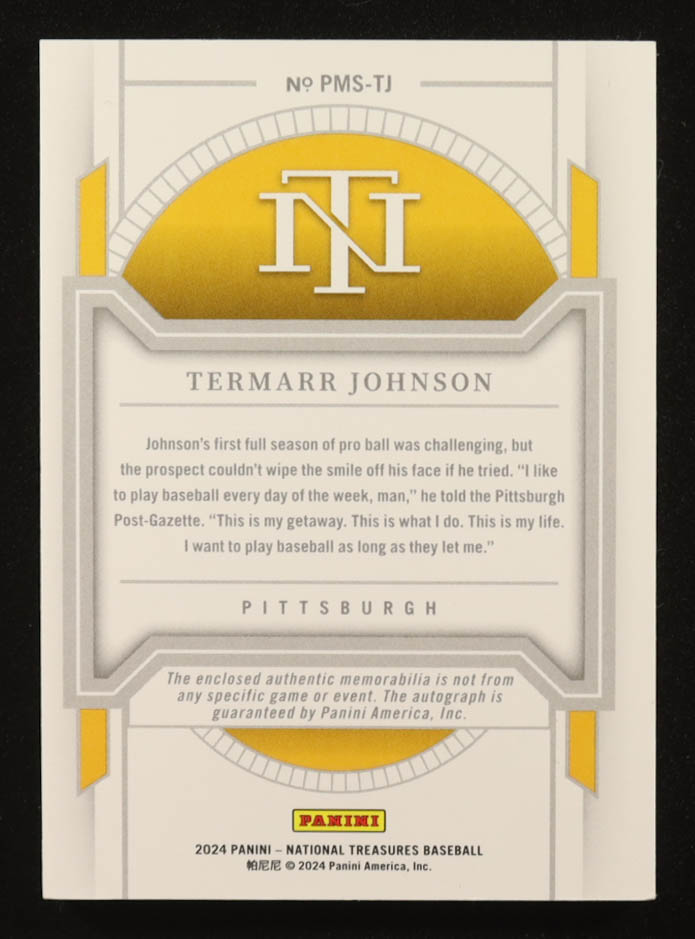Termarr Johnson 2024 Panini National Treasures Prospect Material Signatures #85 #40/99