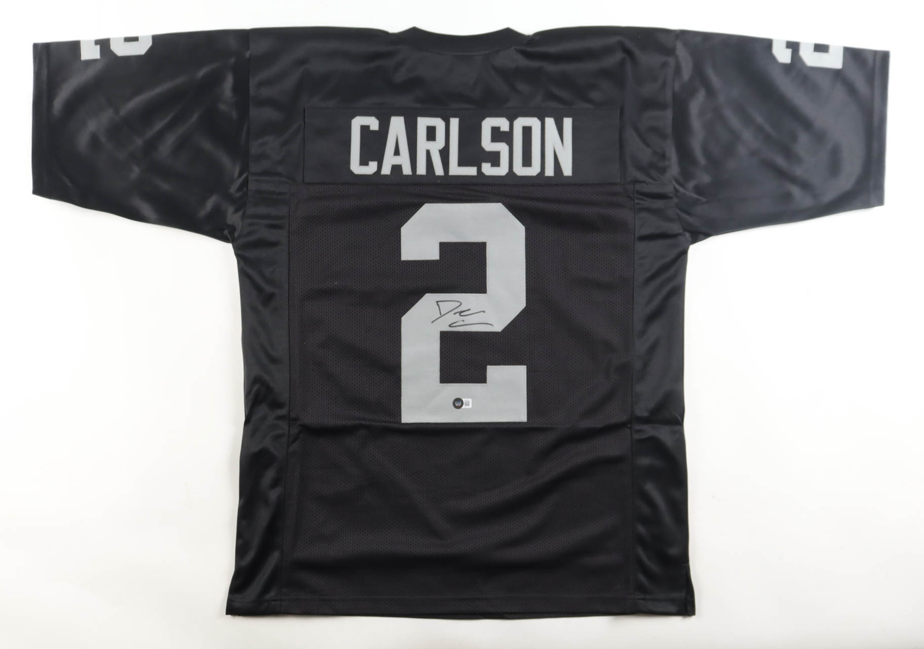 Custom jersey with everything sewn on, size XL. Hand-signed by Daniel Carlson.