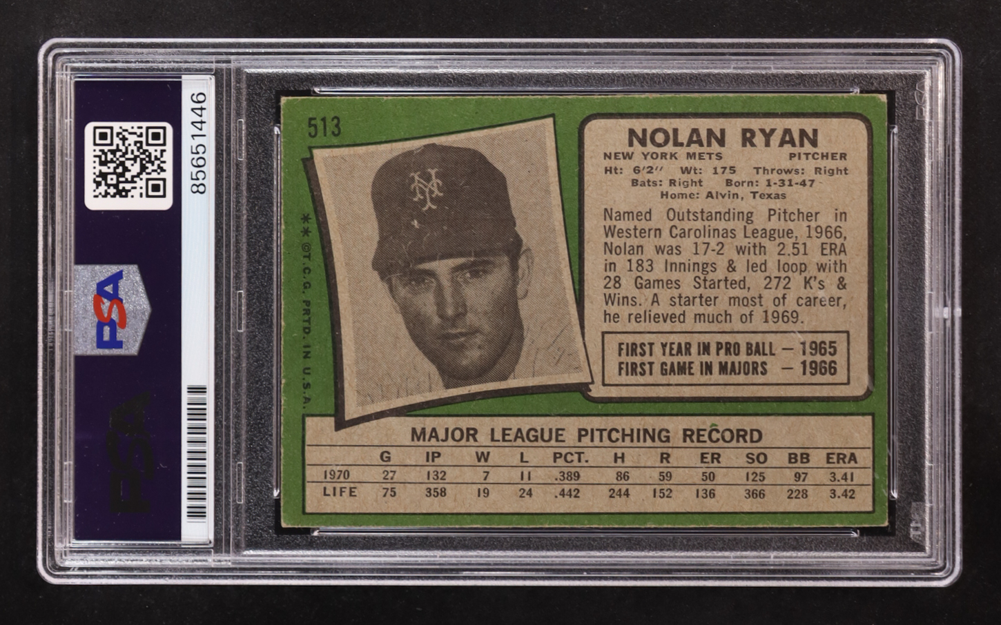 Nolan Ryan Signed 1971 Topps Inscribed "HOF '99" #513 (PSA | Autograph Graded PSA 10)