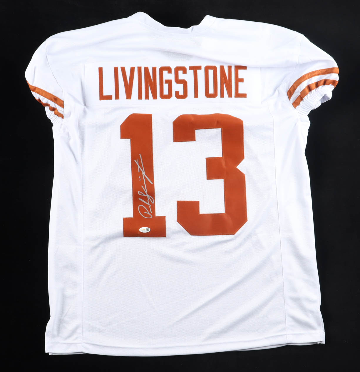 Custom jersey with everything sewn on, size XL. Hand-signed by Parker Livingstone (Texas Longhorns).