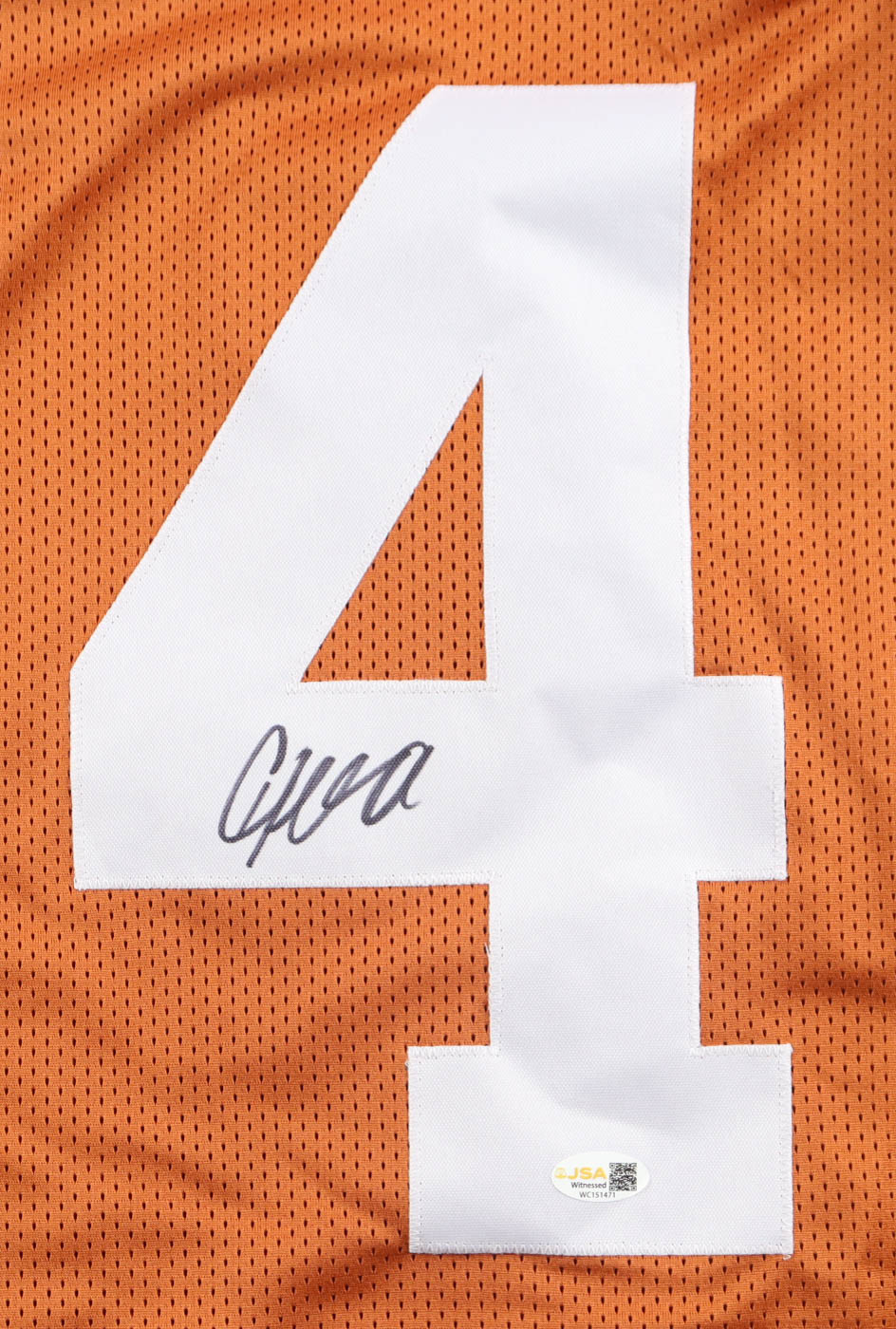 Custom jersey with everything sewn on, size XL. Hand-signed by CJ Baxter (Texas Longhorns).