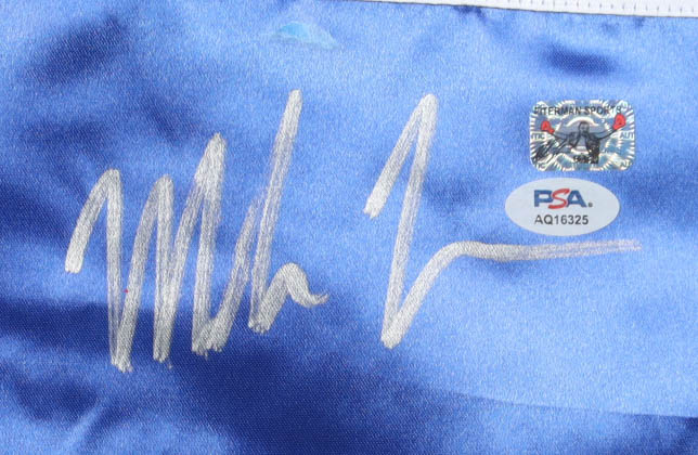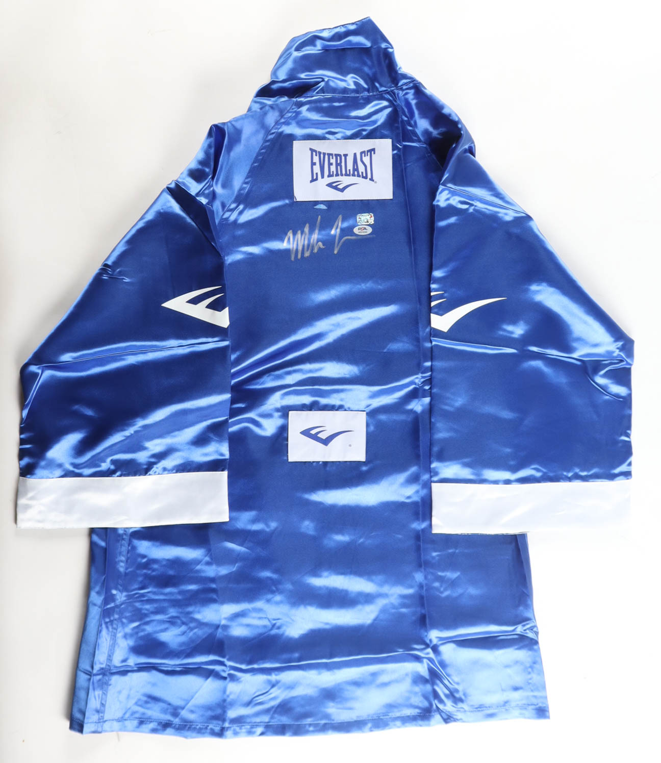 Everlast Boxing robe, size XL. Hand-signed by Mike Tyson (HOF). Please note, there is residue above the signature.