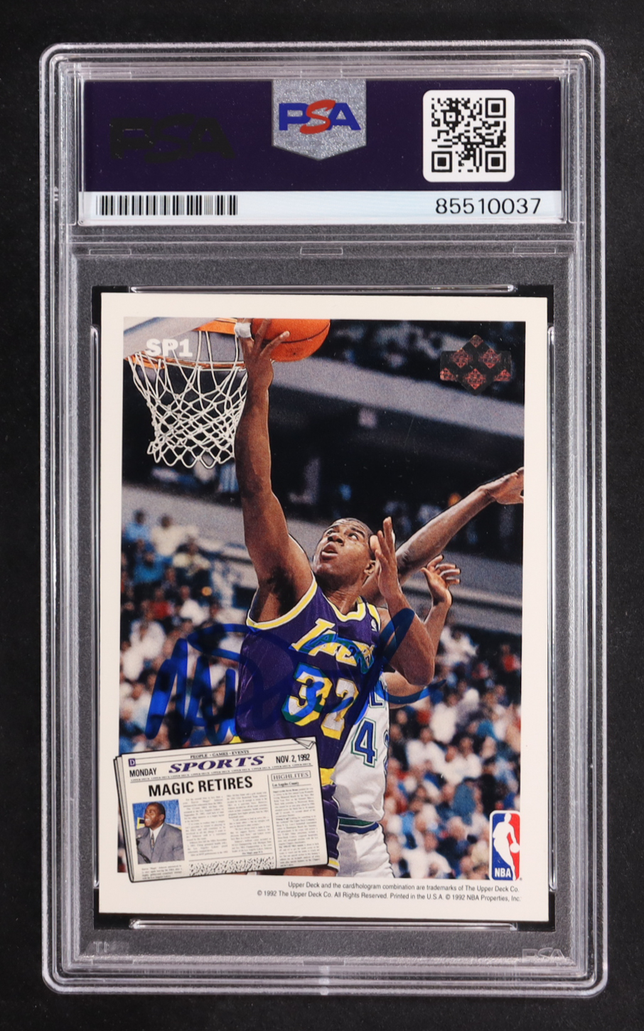 Larry Bird / Magic Johnson Signed 1992 Upper Deck Retirement Card #SP1 (PSA | Autograph Graded PSA 9)