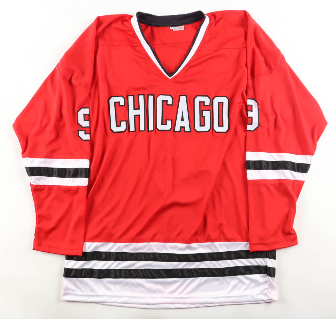 Custom jersey with everything is sewn on, size XL. Hand-signed by Bobby Hull (HOF).