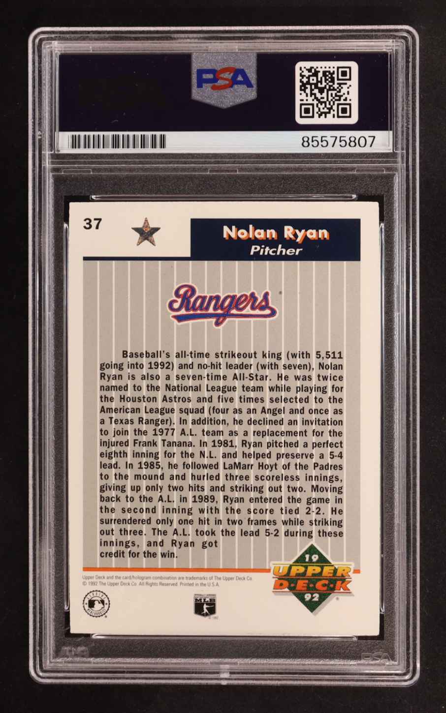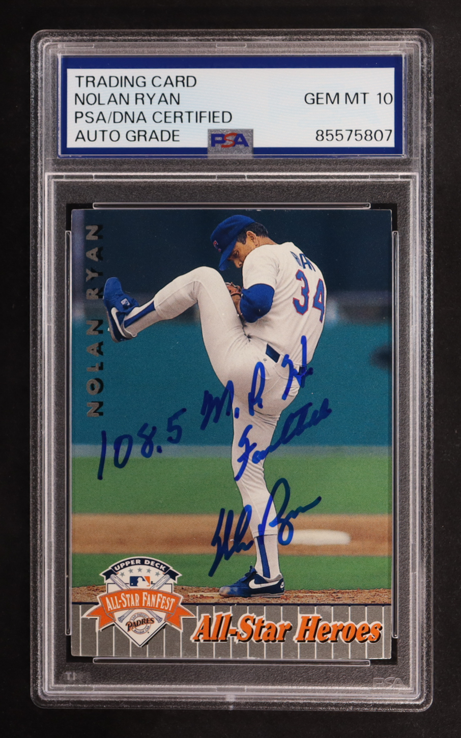 Nolan Ryan Signed 1992 Upper Deck Inscribed "108.5 MPH Fastball" #37 (PSA | Autograph Graded PSA 10)