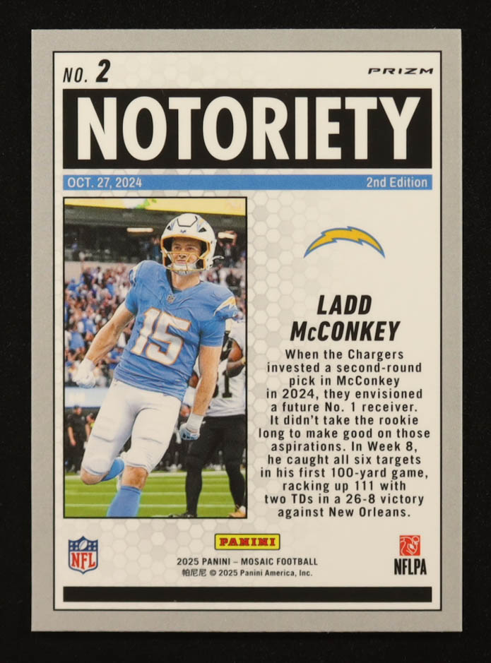 Ladd McConkey 2025 Panini Mosaic Notoriety Mosaic Green #2