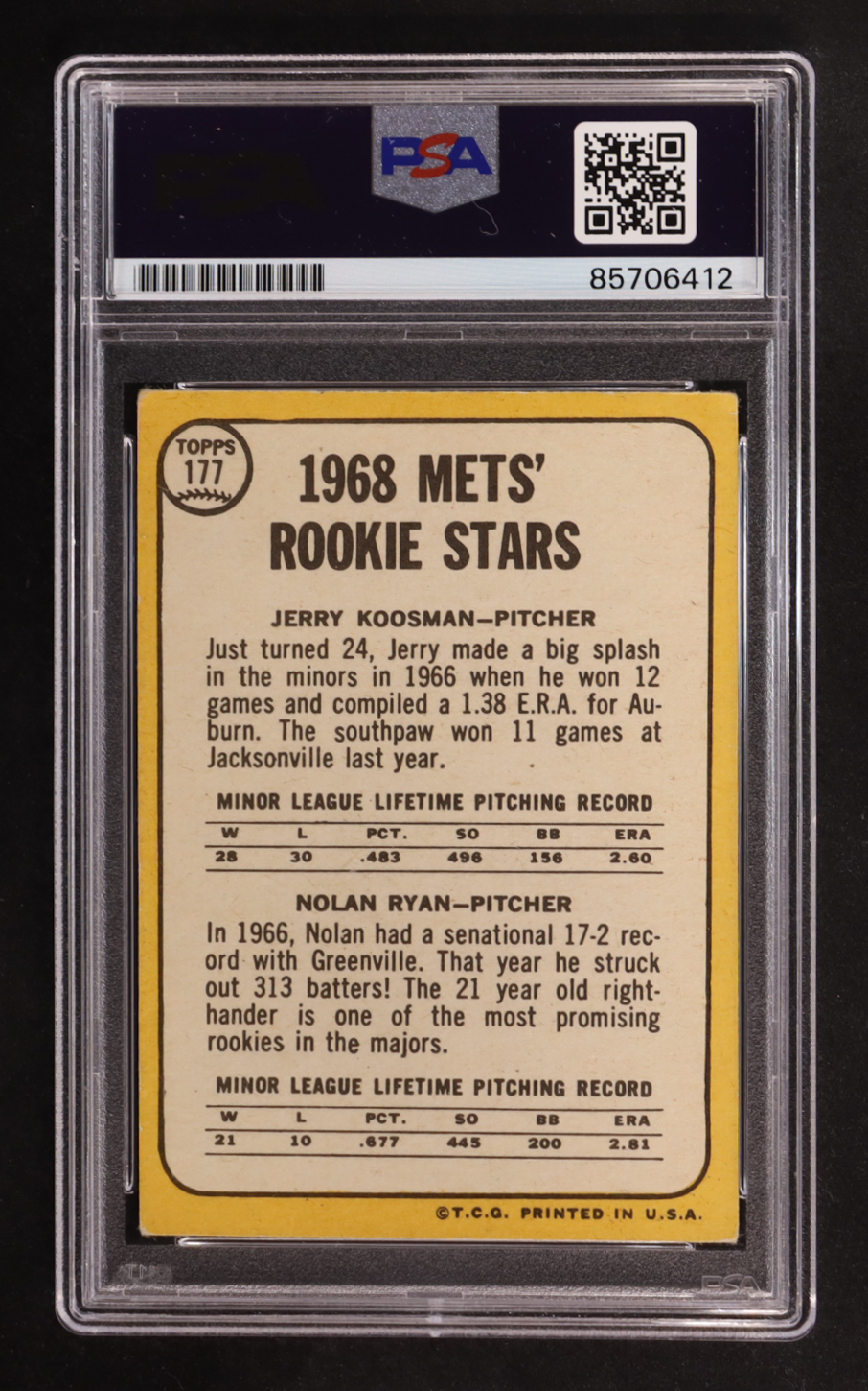 Nolan Ryan Signed 1968 Topps Rookie Stars Inscribed "324 Wins 5,714 K'S And 7 No-Hitters" #177 RC (PSA | Autograph Graded PSA 10)