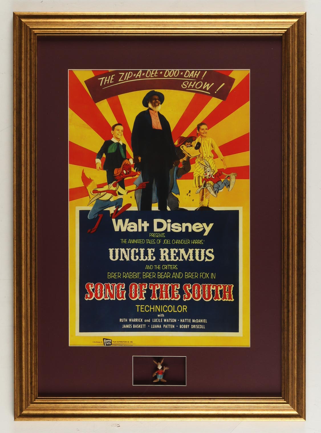 "Walt Disney's: Song of the South" Custom Framed Poster Display With 1960 B'rer Rabbit Figurine