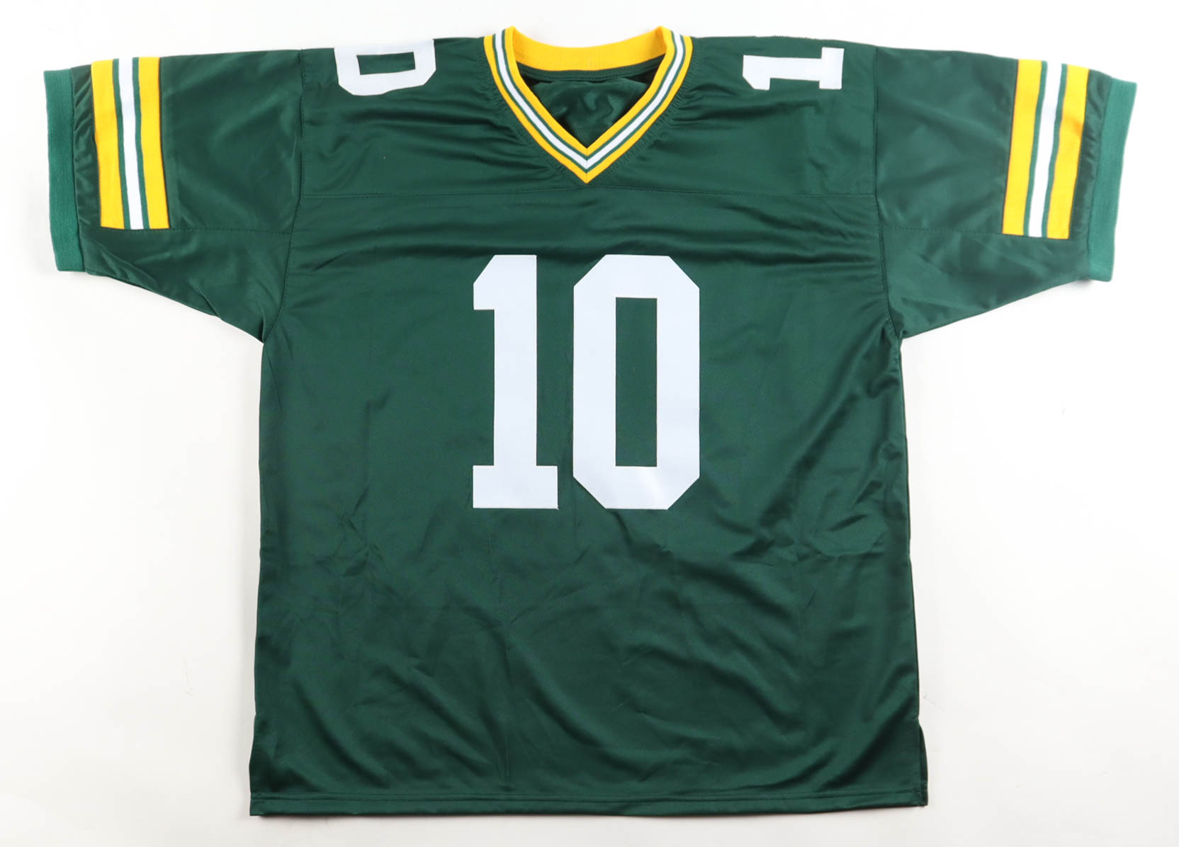 Custom jersey with everything sewn on, size XL. Hand-signed by Jordan Love.