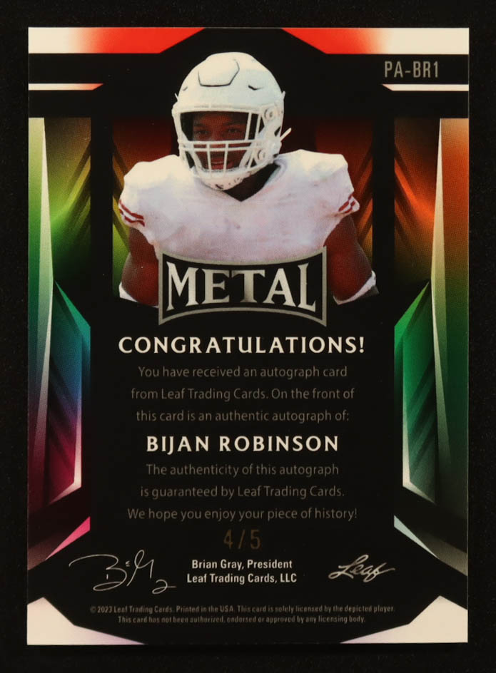 Bijan Robinson 2023 Leaf Metal Portrait Autographs Mojo Purple #PABR1 #4/5 RC
