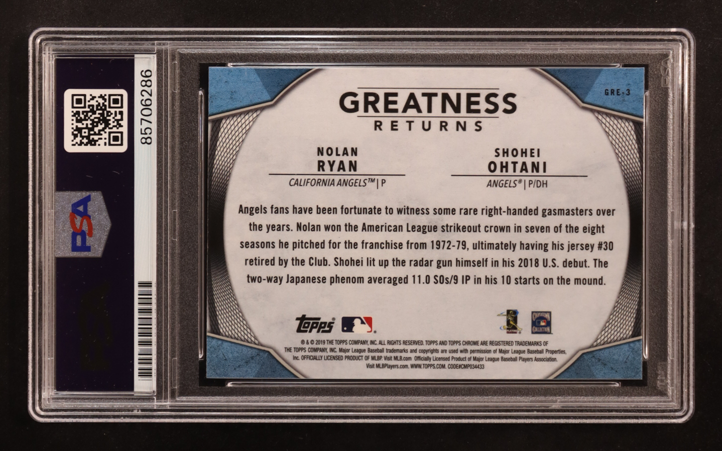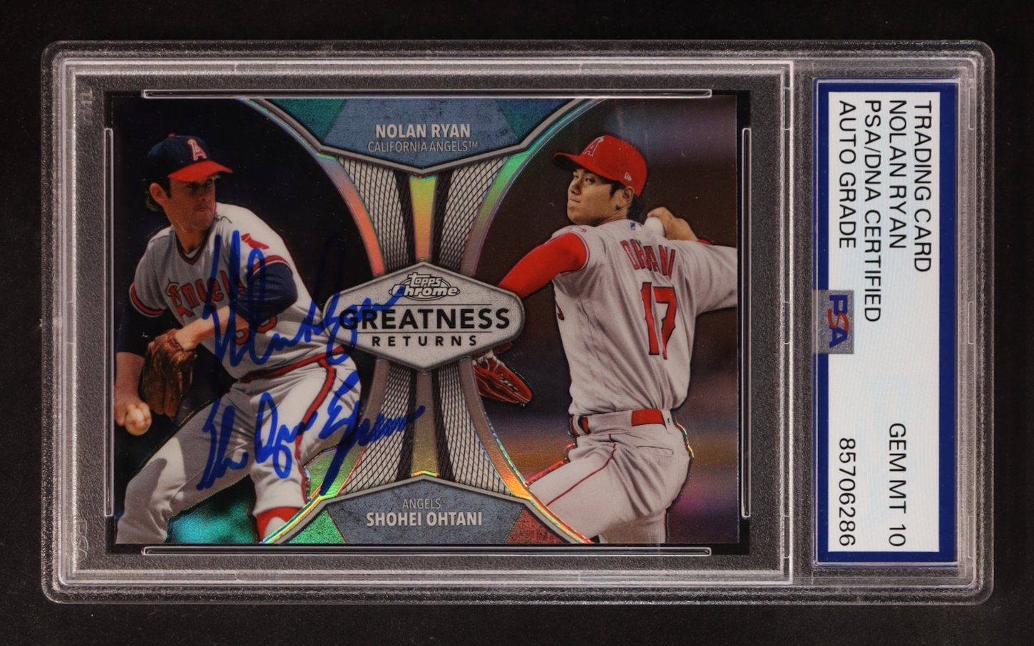 Nolan Ryan Signed 2019 Topps Chrome Greatness Returns With Shohei Ohtani Inscribed "The Ryan Express" #GRE-3 (PSA | Autograph Graded PSA 10)