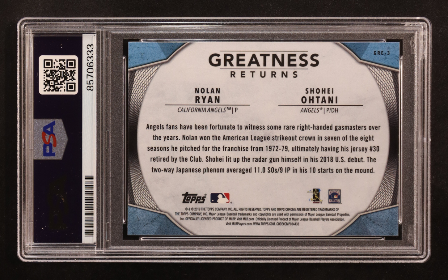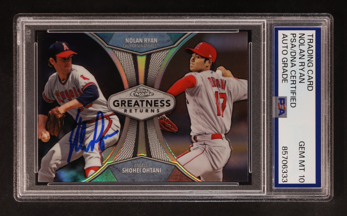 Nolan Ryan Signed 2019 Topps Chrome Greatness Returns With Shohei Ohtani #GRE-3 (PSA | Autograph Graded PSA 10)