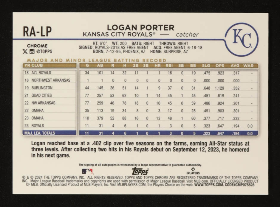 Logan Porter 2024 Topps Chrome Rookie Autographs #RALP RC