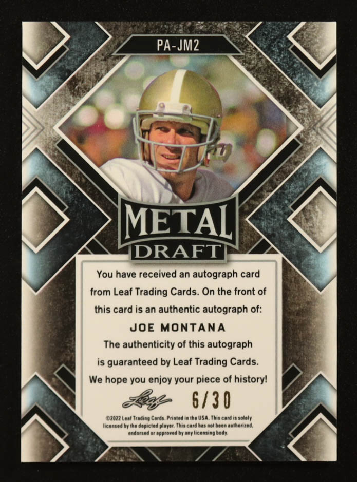 Joe Montana 2022 Leaf Metal Draft Silver Wave Prizm Auto #PAJM2 #6/30