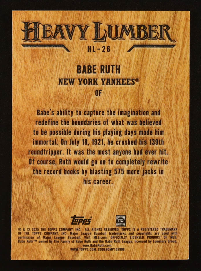 Babe Ruth 2025 Topps Heavy Lumber #HL26