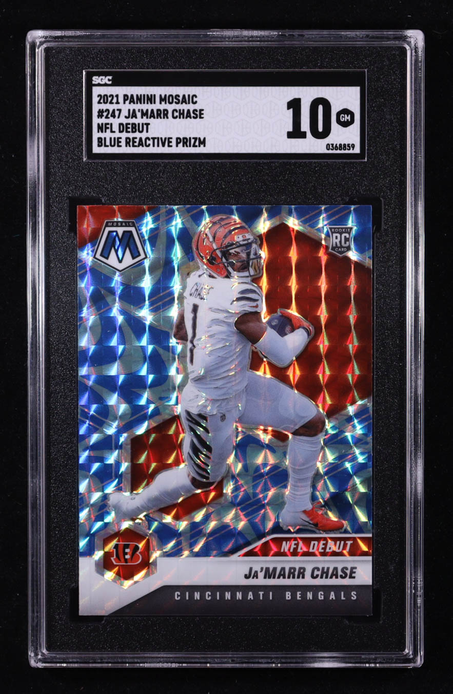 Ja'Marr Chase 2021 Panini Mosaic Mosaic Reactive Blue #247 DEB RC (SGC 10)
