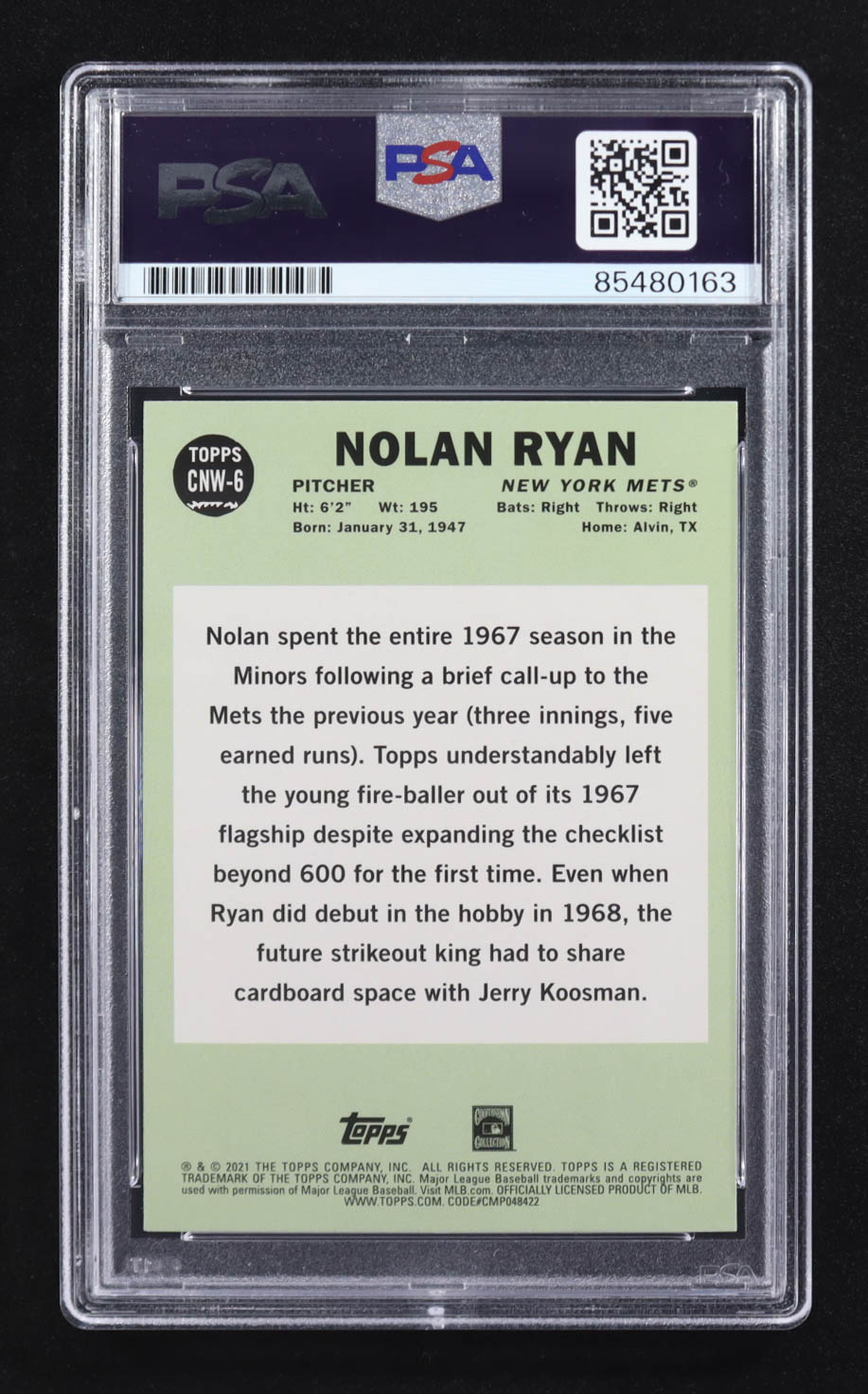 Nolan Ryan Signed 2021 Topps Update Cards That Never Were #CNW6 (PSA | Auto 10)