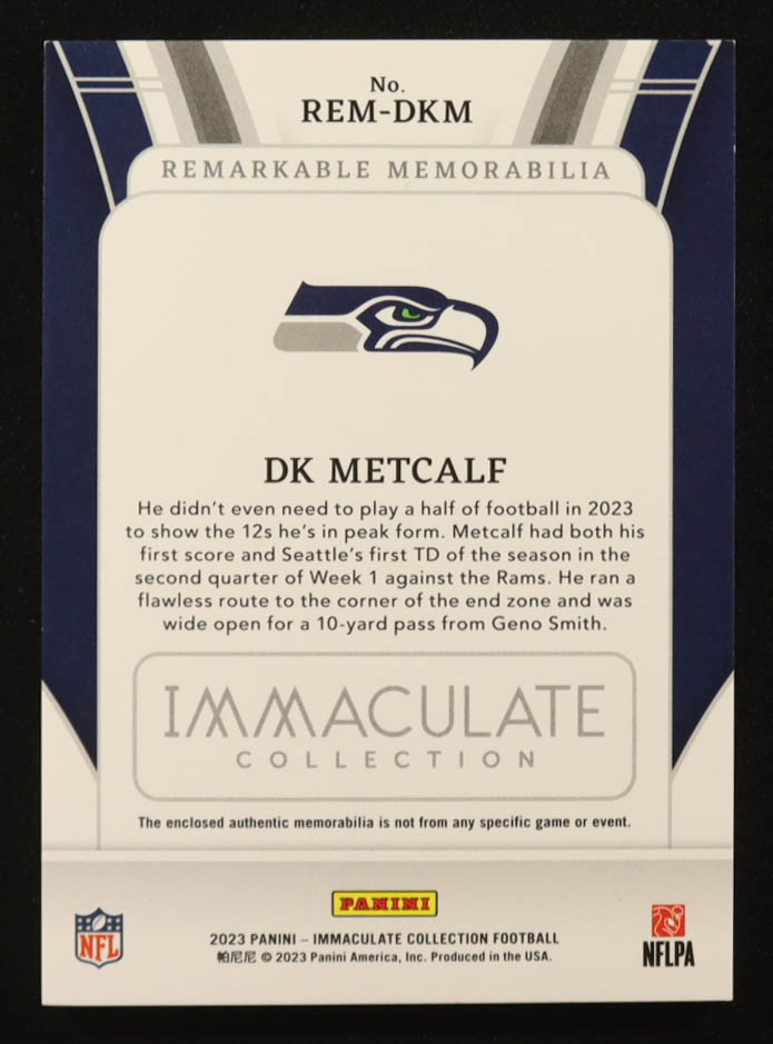 D.K. Metcalf 2023 Immaculate Collection Remarkable Memorabilia #21 #22/49