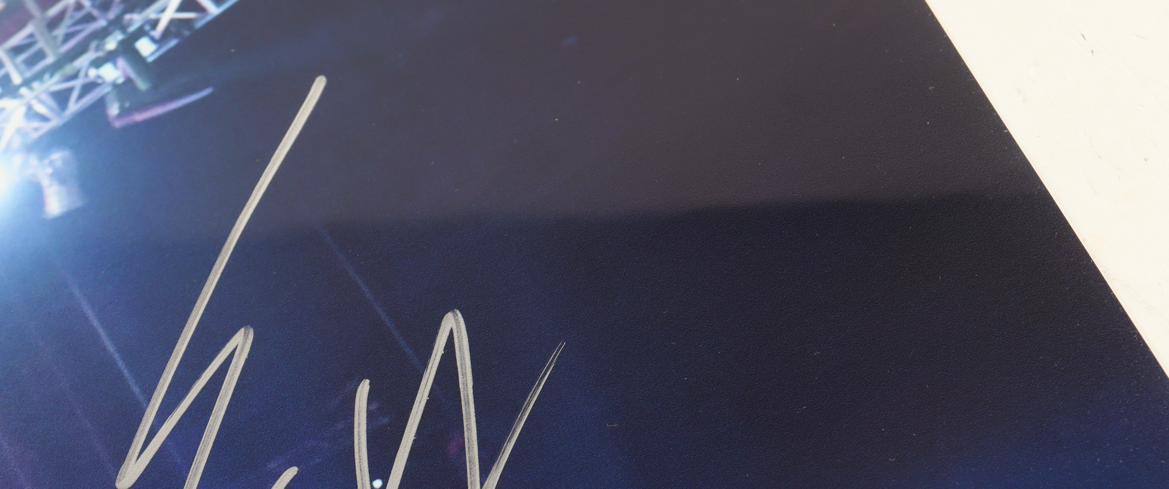 Photo measures 16" x 20" in size and has been hand-signed by Iyo Sky. Please note the creasing on the photo.