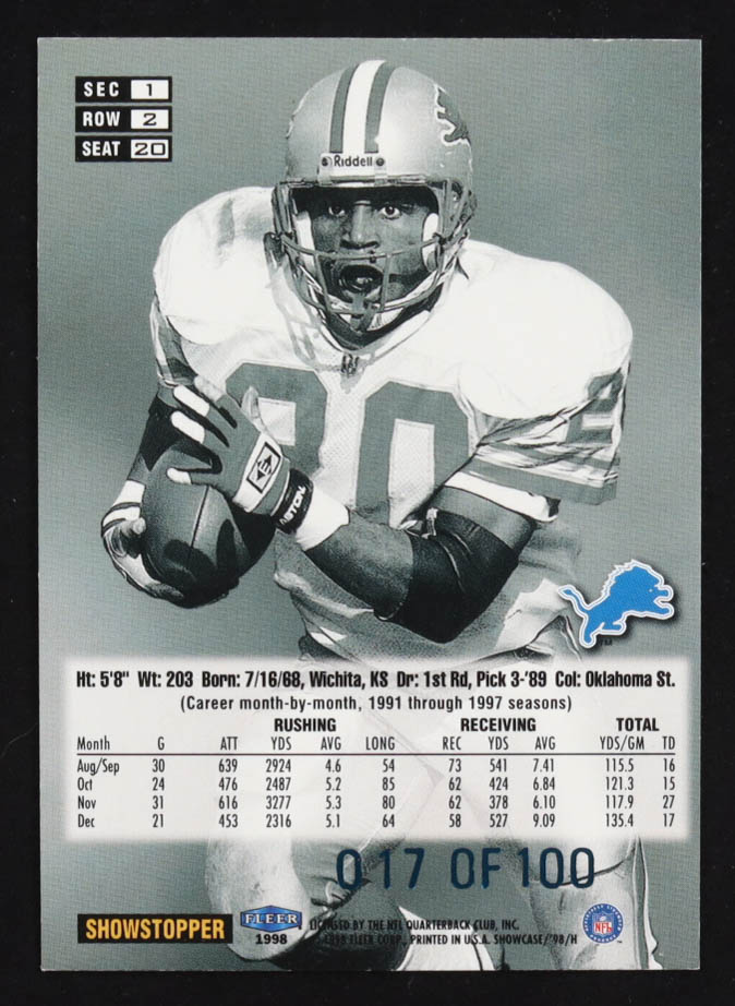 Barry Sanders 1998 Flair Showcase Legacy Collection Row 2 #20 #017/100