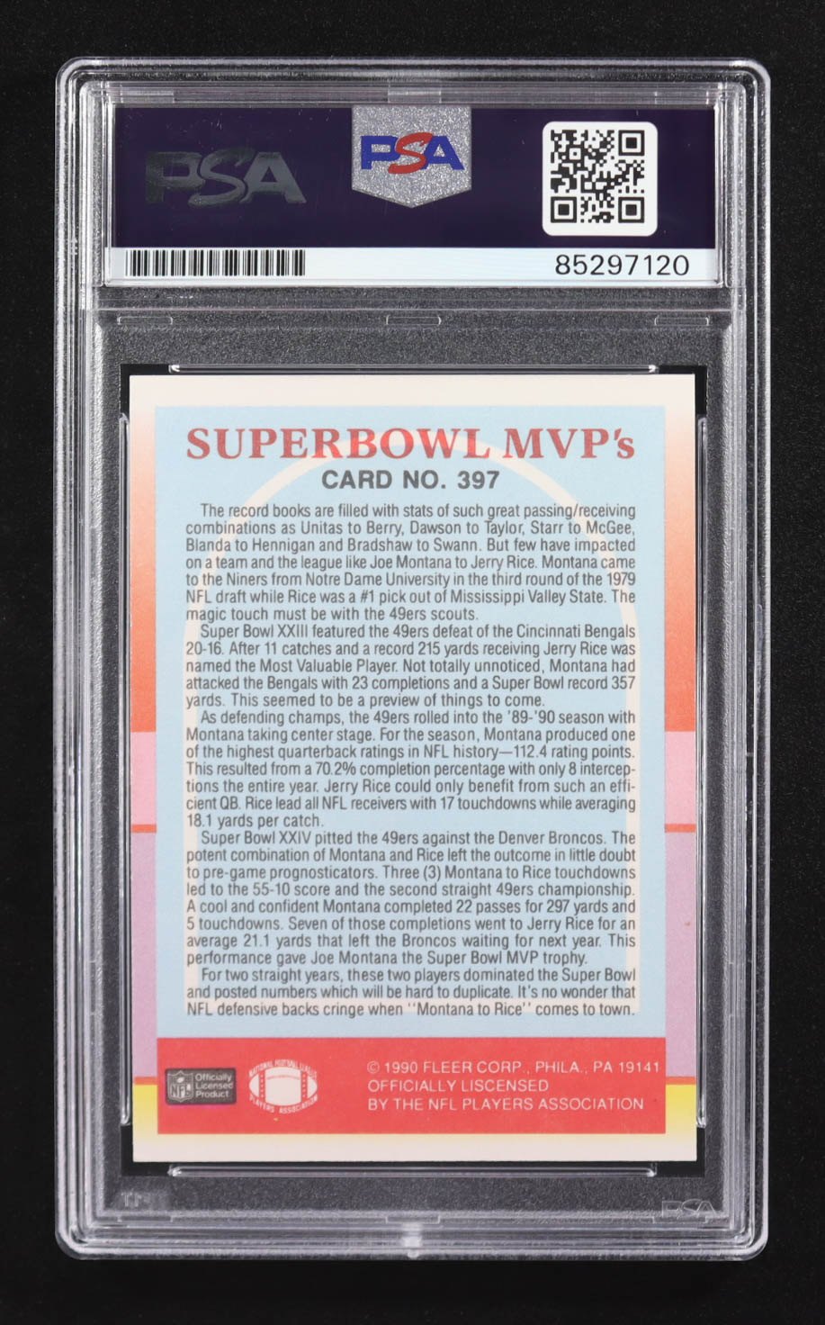 Joe Montana Signed 1990 Fleer #397 Super Bowl MVP's Jerry Rice / Joe Montana HOR (PSA | Auto 10)