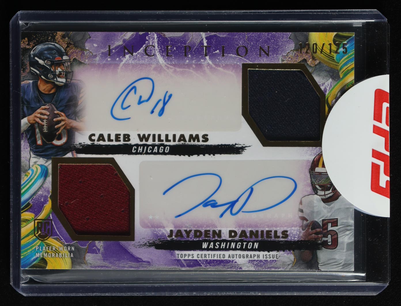 Caleb Williams / Jayden Daniels 2024 Topps Inception Dual Rookie Relic Autographs Purple #DRRAWD #120/125 RC
