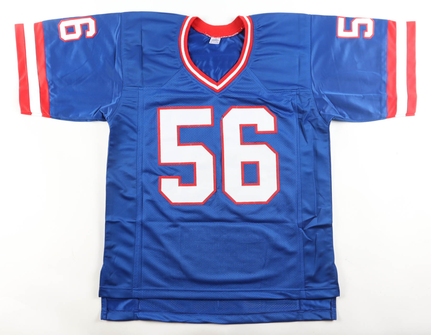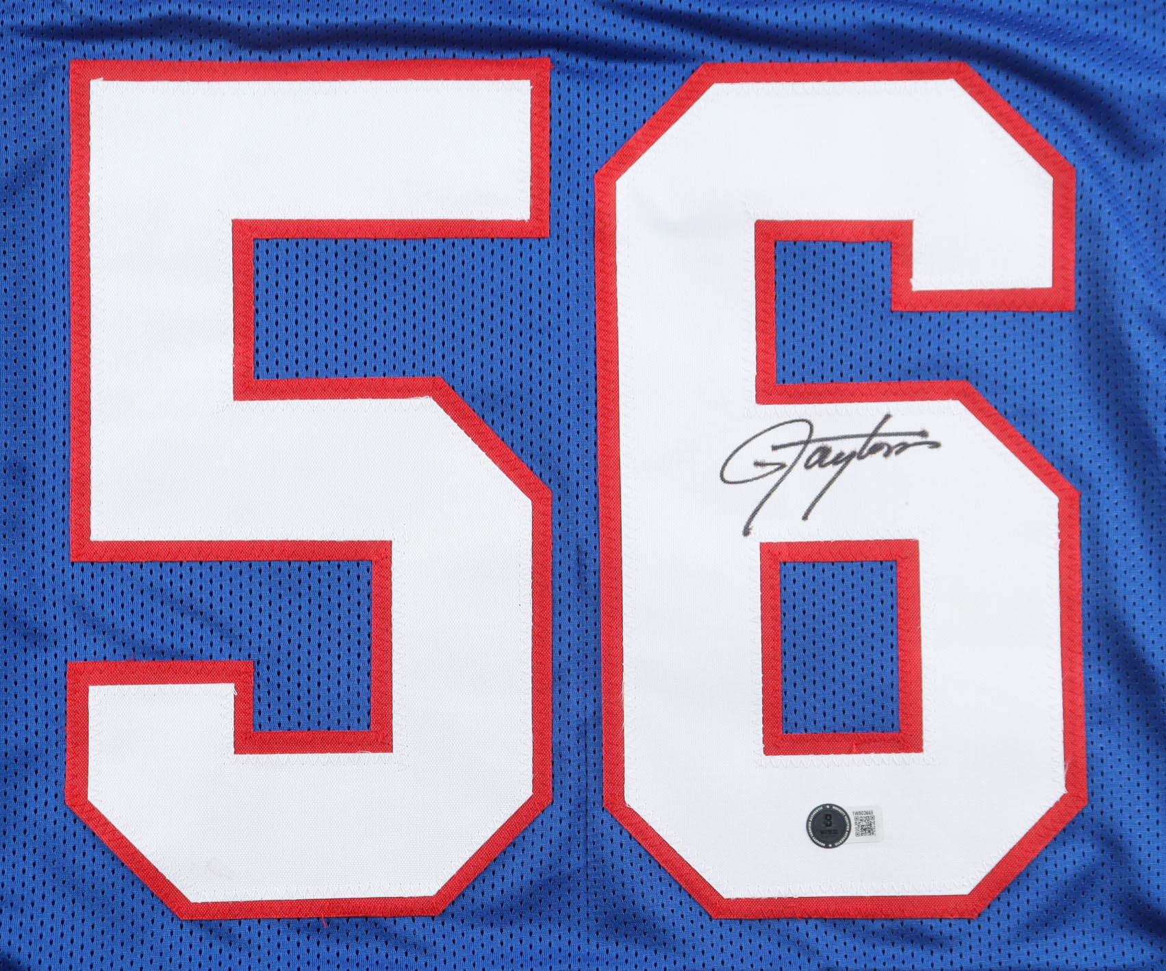 Custom jersey with everything sewn on, size XL. Hand-signed by Lawrence Taylor (HOF). Taylor's career highlights have been custom stitched onto the back of the jersey below the reverse numbers.