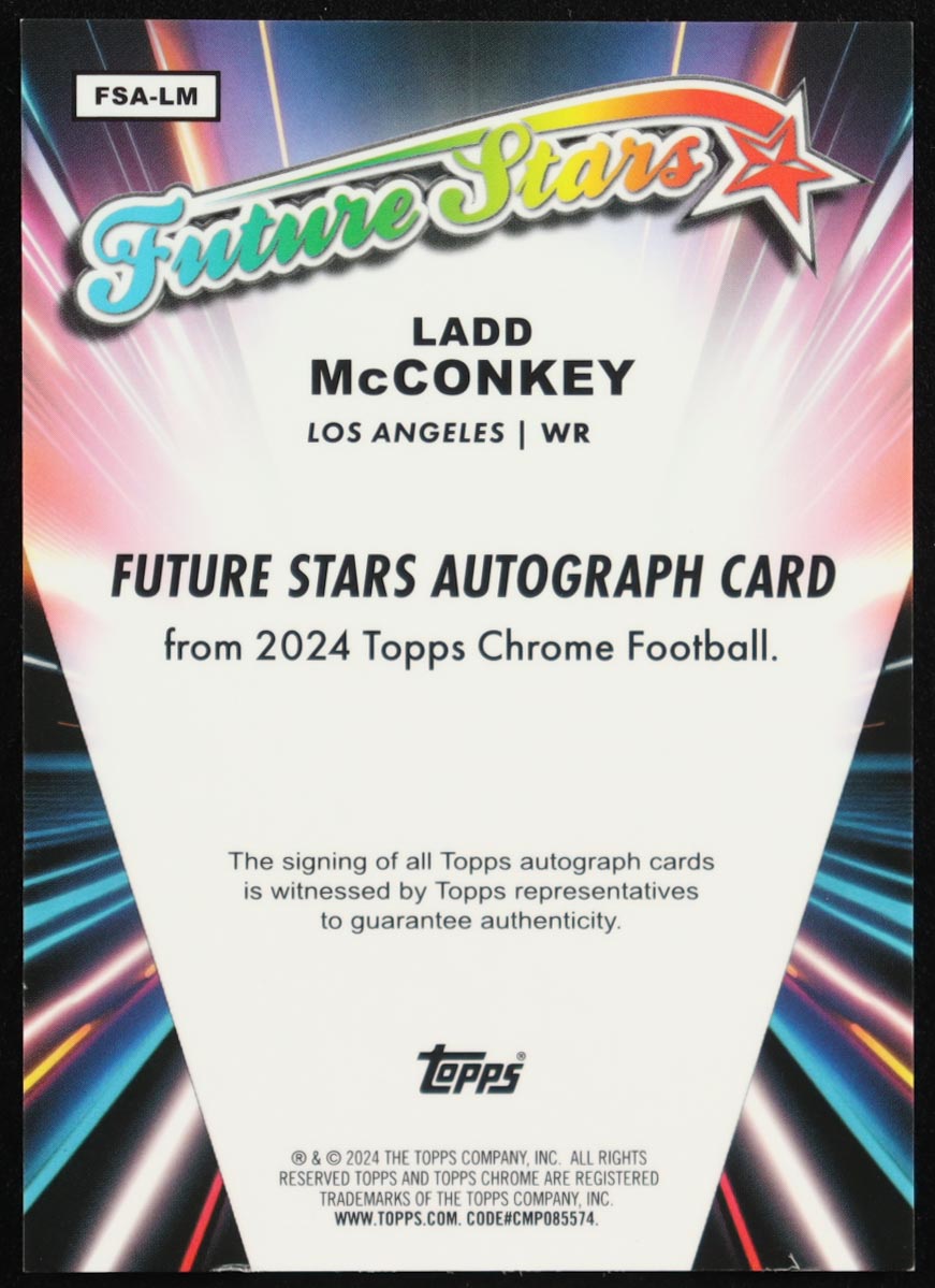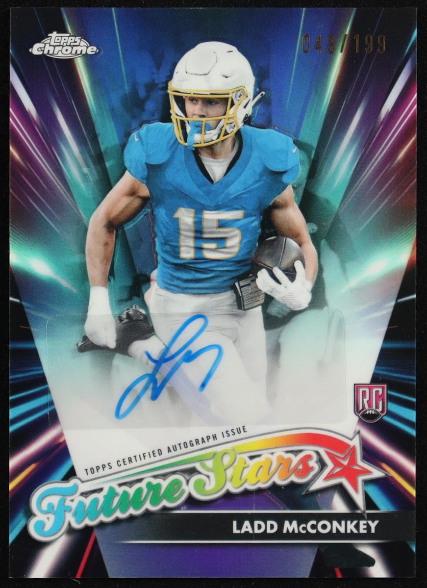 Ladd McConkey 2024 Topps Chrome Future Stars Autographs Aqua Refractors #FSALM #049/199 RC