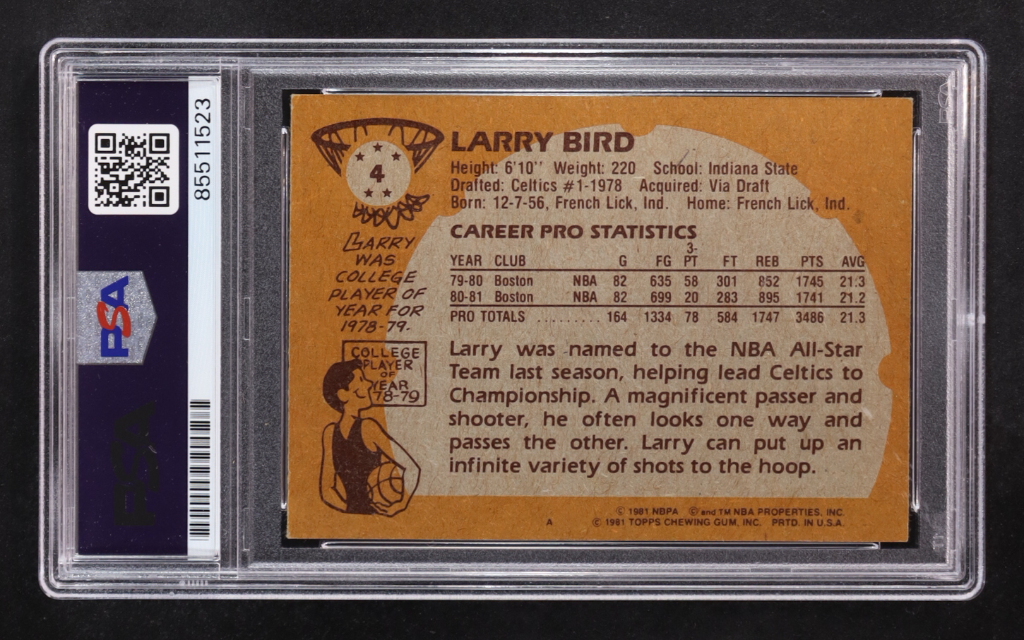 Larry Bird Signed 1981 Topps #4 (PSA 10)
