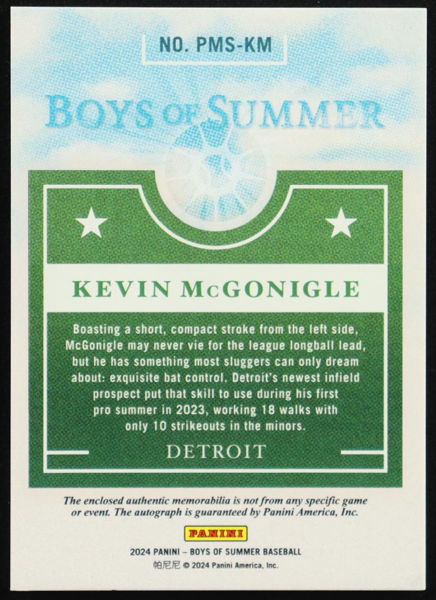 Kevin McGonigle 2024 Panini Boys of Summer Prospect Material Signatures #66 #22/99 RC