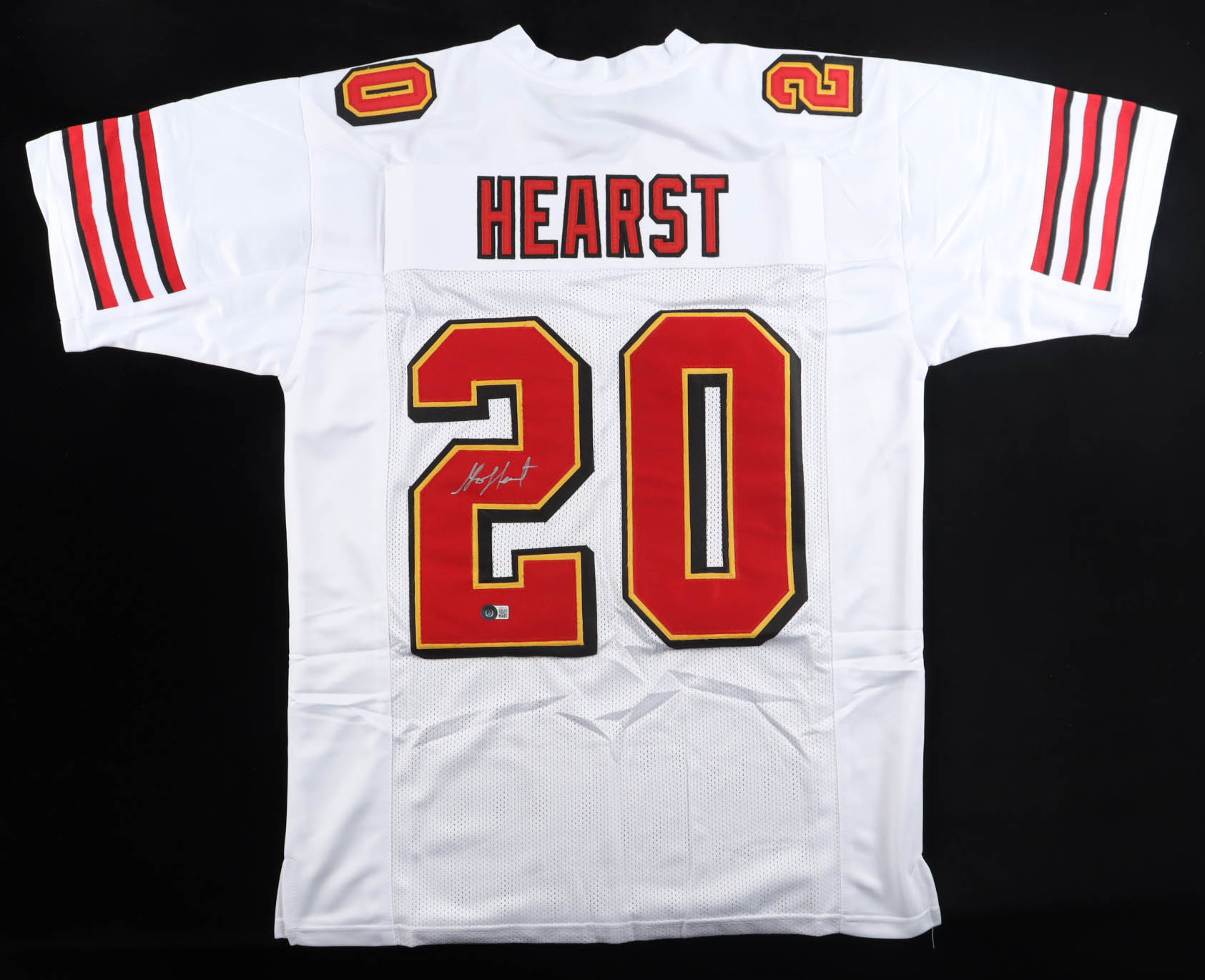 Custom jersey with everything sewn on, size XL. Hand-signed by Garrison Hearst.